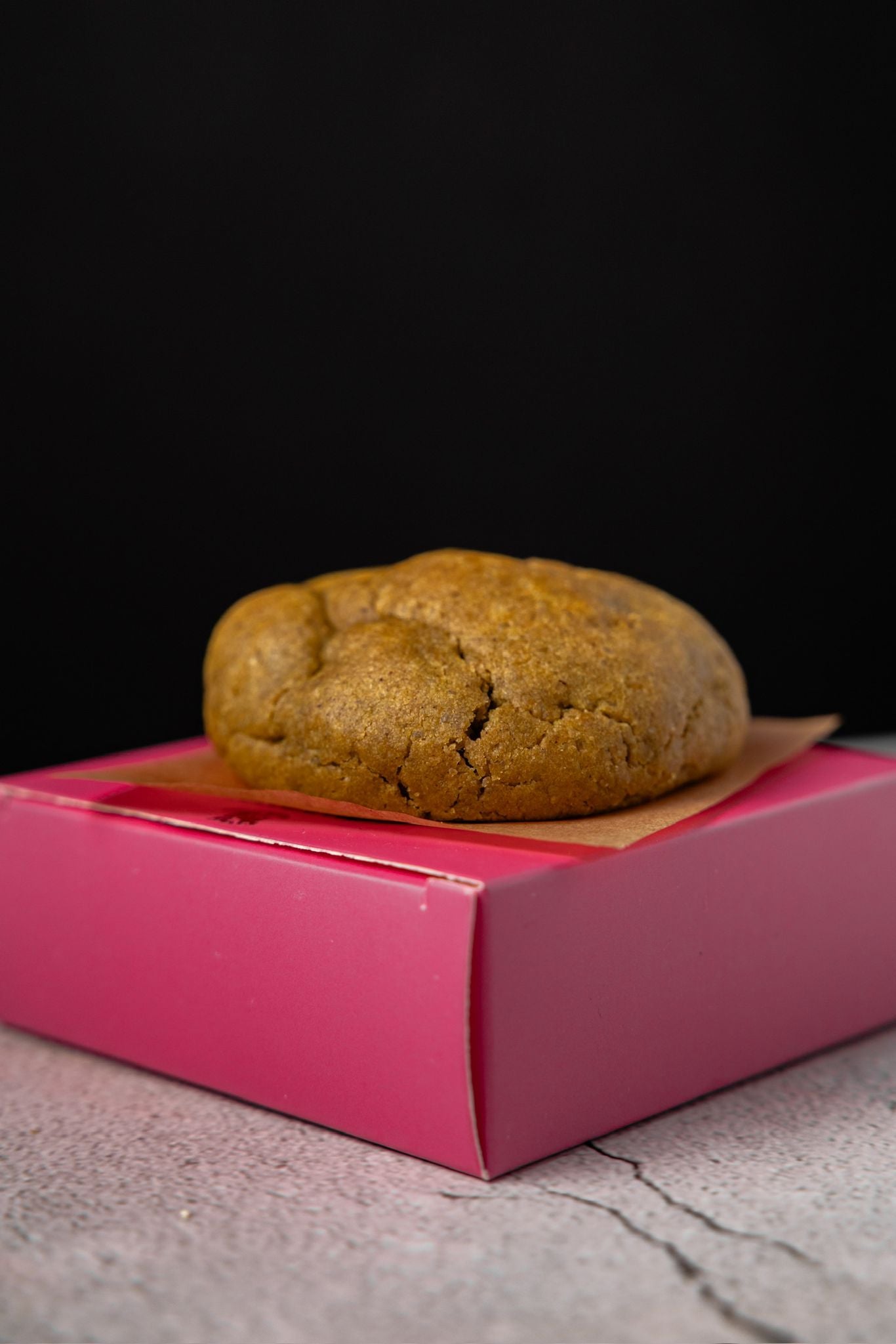Pumpkin Cheesecake—Mad Batter New York’s vegan and gluten-free pumpkin cheesecake cookies. This limited-edition treat blends spiced pumpkin with a creamy cheesecake swirl, creating the perfect harmony of autumn flavors in every bite.